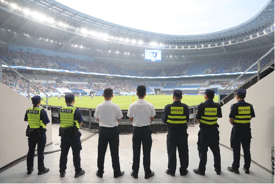 安保从不是孤军奋战,而是多方联动的“协同作战”。清晨五点的训练场上,福保队员们正开展防暴演练,盾牌阵型整齐划一,处置动作干脆利落——这是他们落实市公安机关“五个上岗”要求的日常缩影,全员持证合规、培训合格、足岗足员是不变的底线。主动与辖属公安机关、赛事主办方搭建结构化对接体系,警保联动的频率以“小时”计算。累计50余次违禁品测试、防暴检测、应急演练中,从可疑包裹排查到突发情况处置,从指令传达响应到多方配合补位,在一次次磨合中畅通流程、凝聚合力,让安全防线愈发牢固。