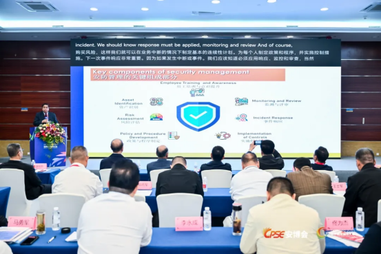 莱加斯皮保全与调查公司总裁、菲律宾国家警察航空安全组顾问委员会主席、菲律宾国家警察退役中将(博士)恩里克·B·加朗二世围绕《安防管理》主题展开,结合国际安防案例,阐释现代安防系统工程。他提出,有效的安防管理应建立在动态风险评估基础上,须建立严格合规流程,以构建具有韧性的安全架构。